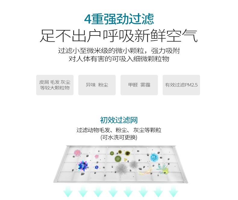 4、五檔風(fēng)速,開蓋斷電,四重過濾,H13級過濾,過濾效率達(dá)99%以上