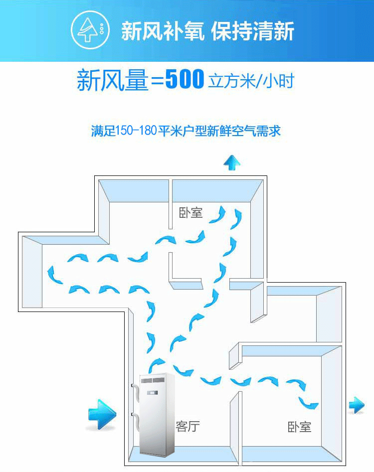 2、新風量:500m3/h,尺寸:1620*600*440mm,功率160W;