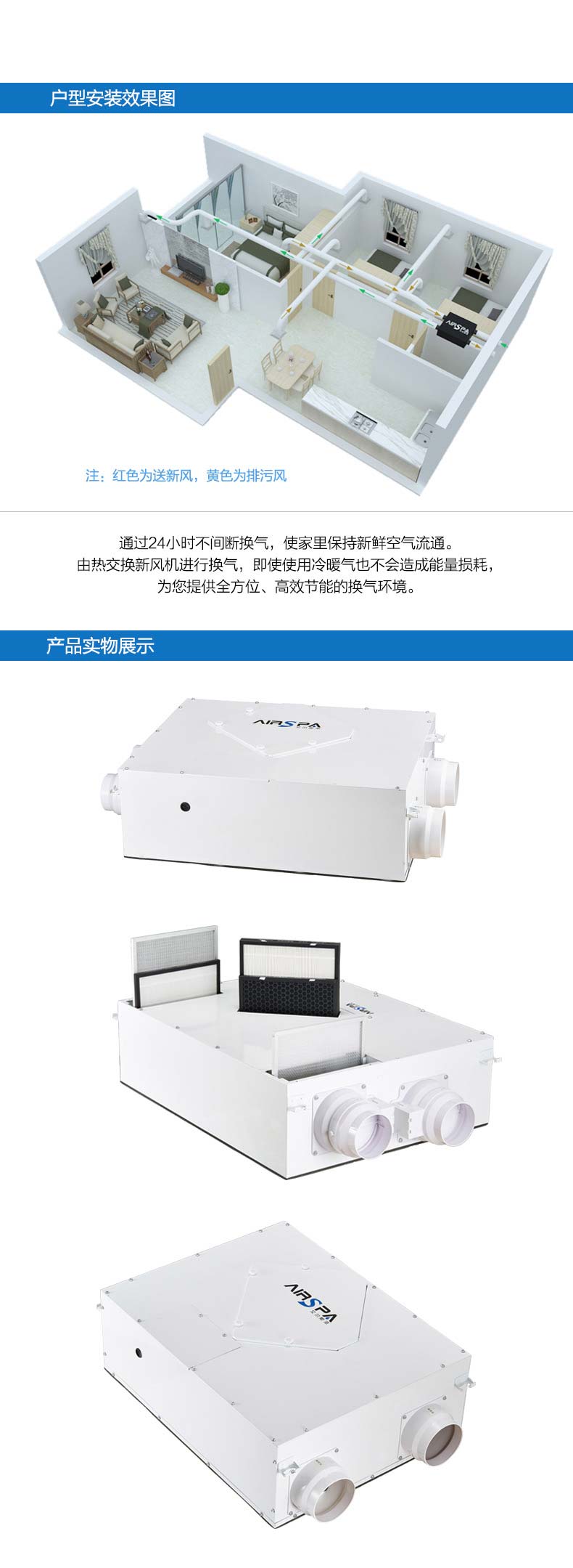 2.雙向換氣,換氣效果好,多檔風(fēng)速可選,滿足差異化新風(fēng)量需求;